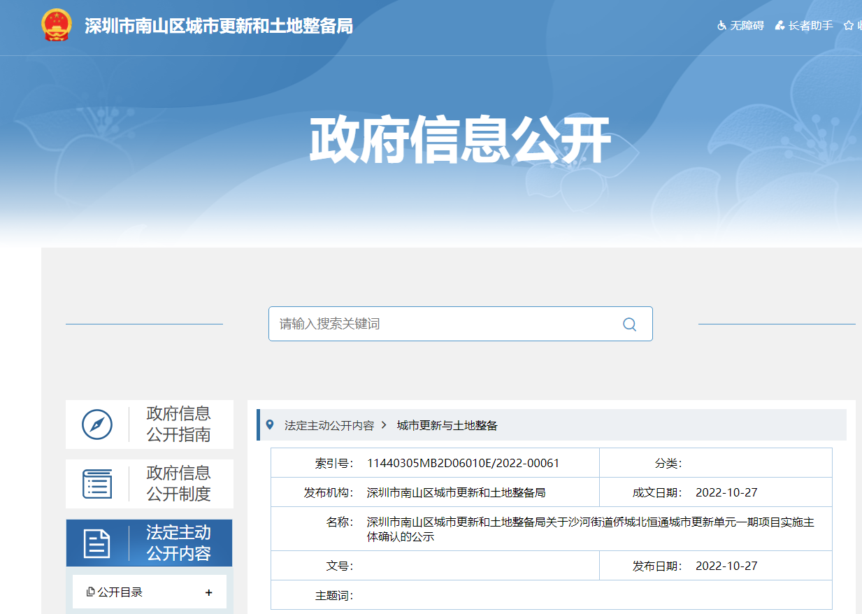 侨城北恒通城市更新单元一期项目实施主体确认公示南山区沙河街道侨城北恒通城市更新单元被列入《2018年深圳市南山区城市更新单元计划第二批计划》,项目于2021年4月发布规划...