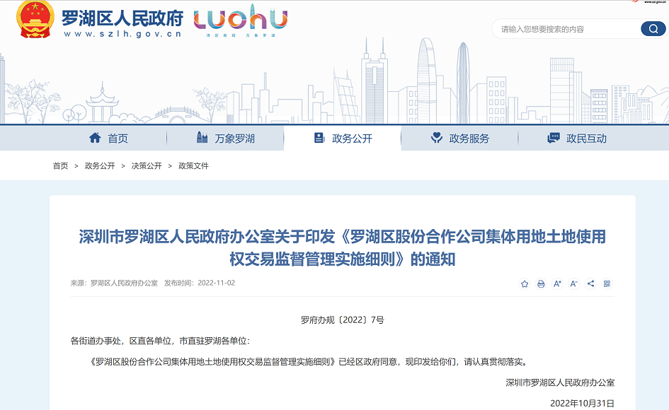 罗湖出台集体土地交易细则:城市更新项目专规获批后应走平台选择合作开发商