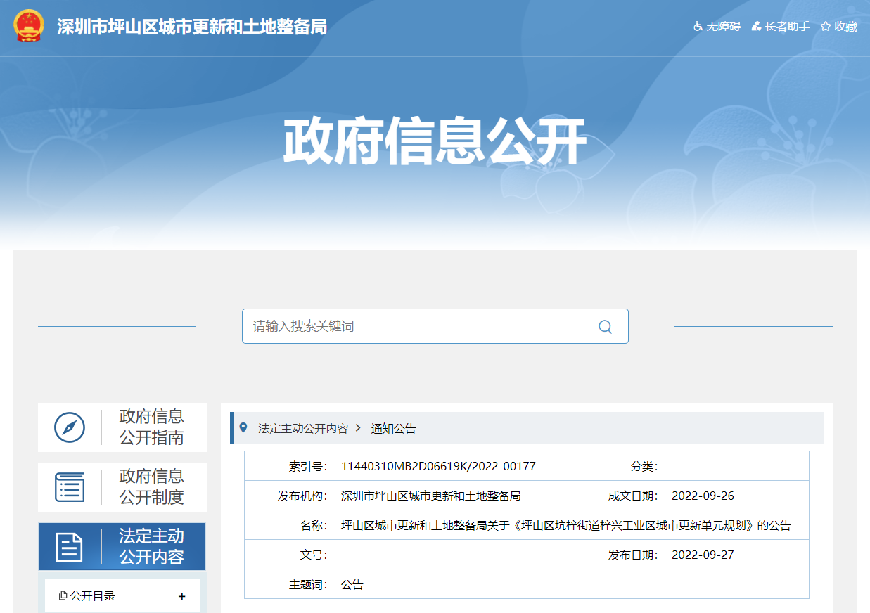 9月27日,坪山区坑梓街道梓兴工业区城市更新单元规划公示,规划容积327960平方米;9月28日,坪山区碧岭街道汤坑老围片区城市更新单元规划公示,规划容积303400平方米。梓兴...