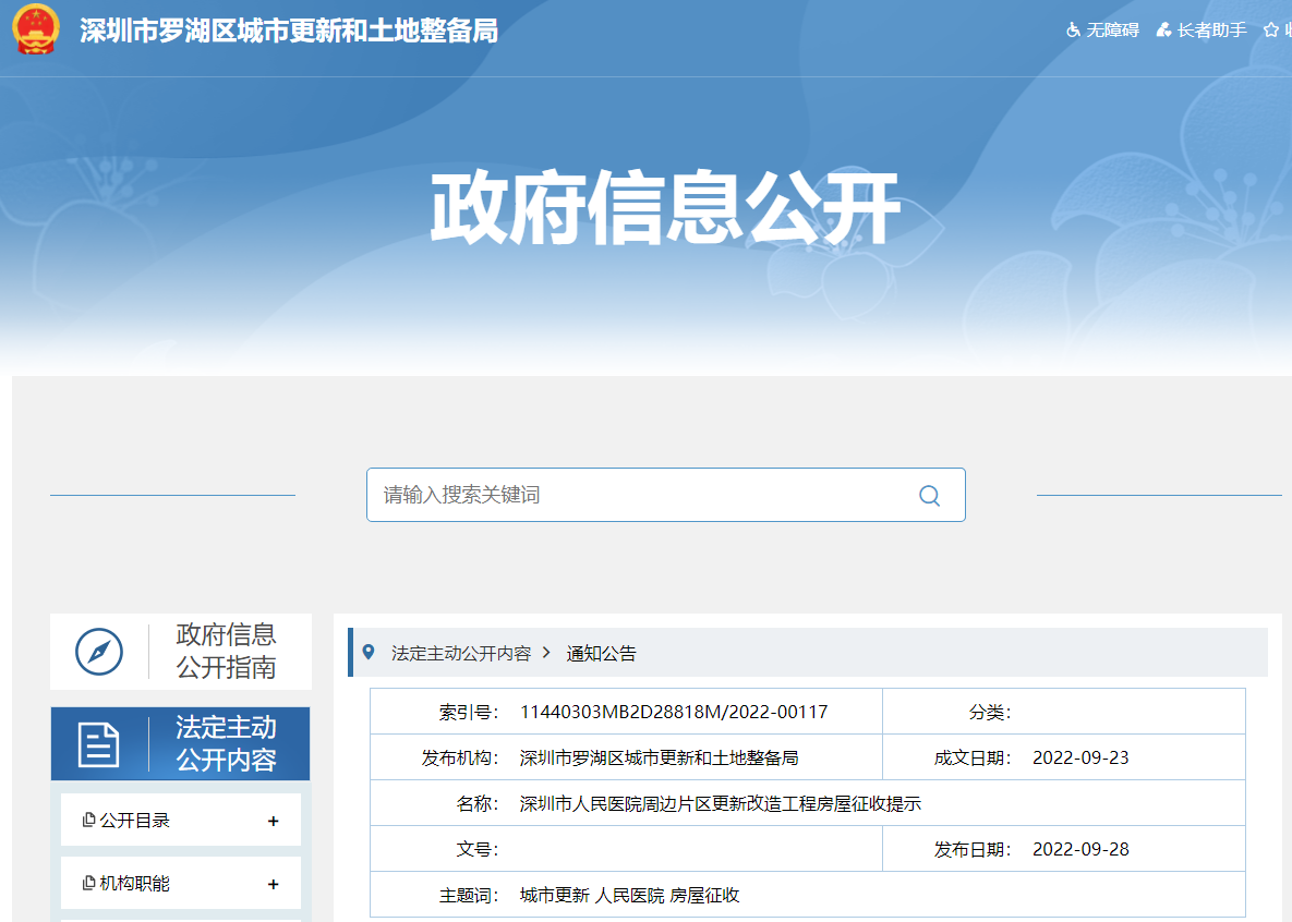 深圳人民医院片区更新项目启动房屋征收提示