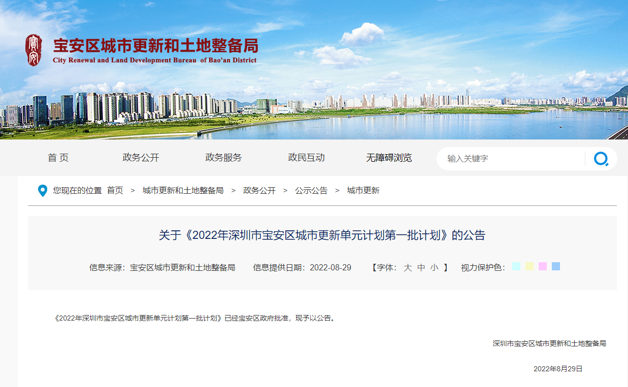 宝安今年首批城市更新计划公示,宝投集团工改工项目调出计划