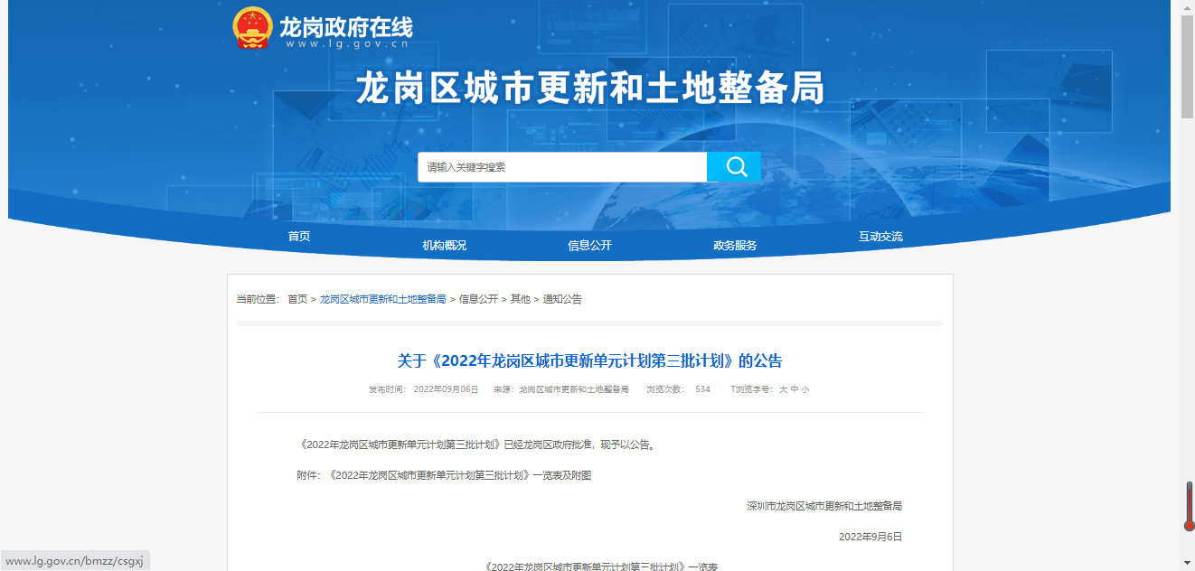 龙岗区发布2022年第三批城市更新计划,涉及五个项目