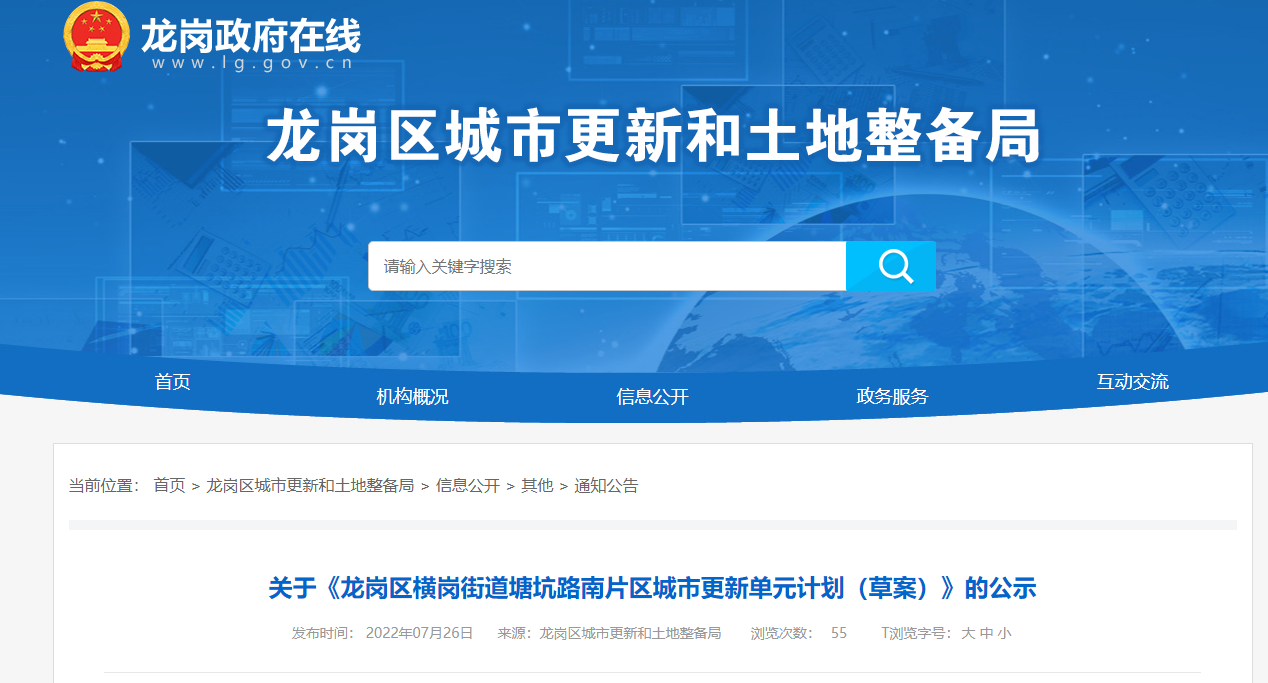 《龙岗区横岗街道塘坑路南片区城市更新单元计划(草案)》已经龙岗区城市更新和土地整备局2022年第14次业务会审议通过,依据《深圳市拆除重建类城市更新单元计划管理规定...