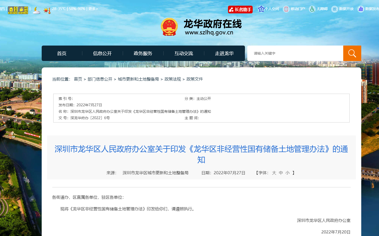 龙华区非经营性国有储备土地管理办法 第一章总则 第一条【制定目的与依据】 为进一步规范龙华区非经营性国有储备土地管理,创新国有储备土地分类管理工作机制,依...