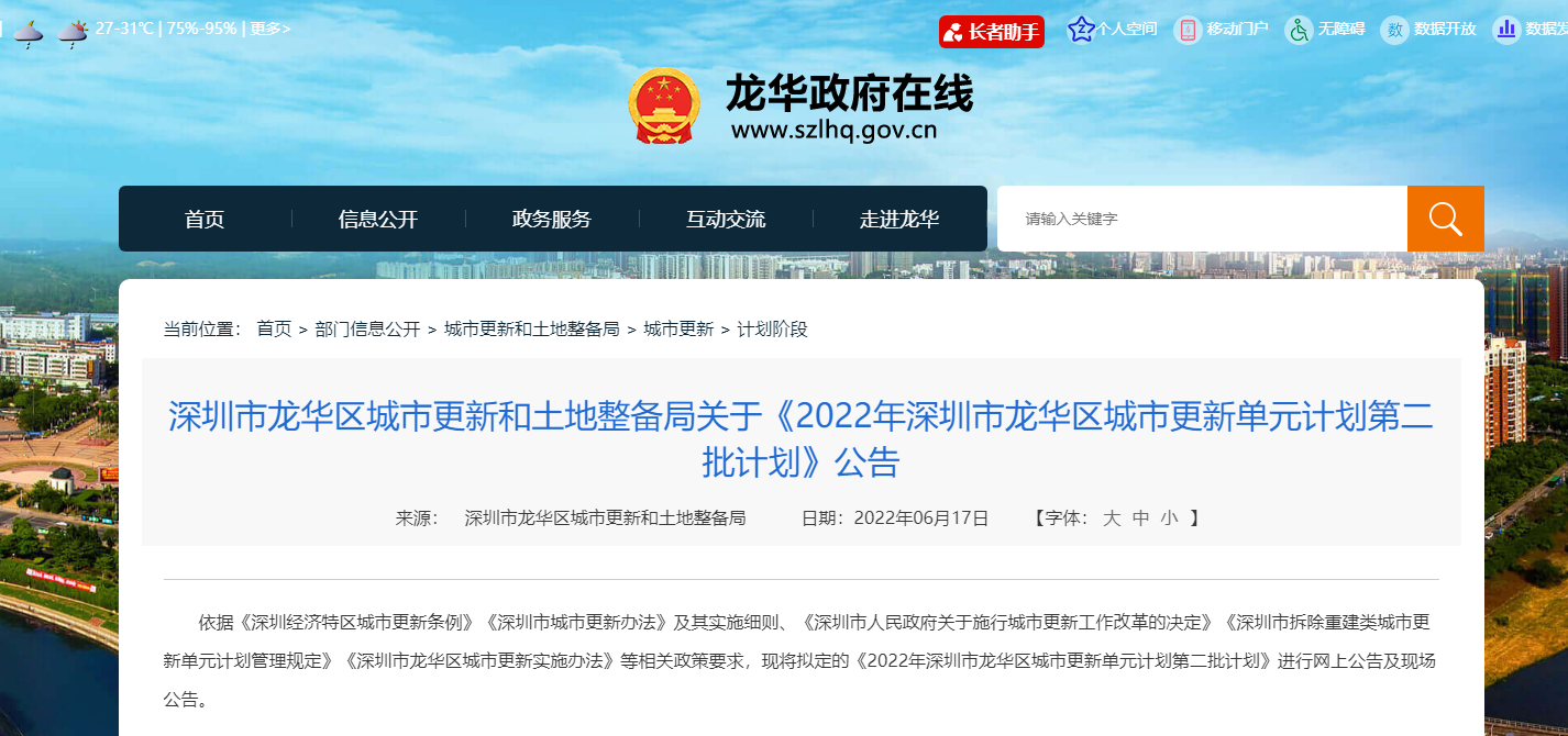 2022年深圳市龙华区城市更新单元计划第二批计划,涉及两个项目