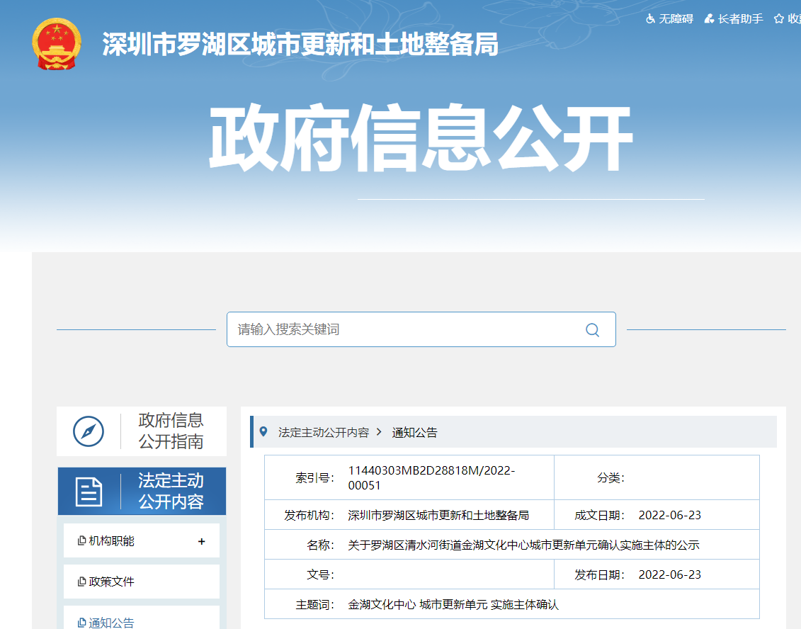 6月23日,深圳市罗湖区城市更新和土地整备局发布“关于罗湖区清水河街道金湖文化中心城市更新单元、清水河街道中溢地块城市更新单元确认实施主体”的公示。罗湖区清水河街道...