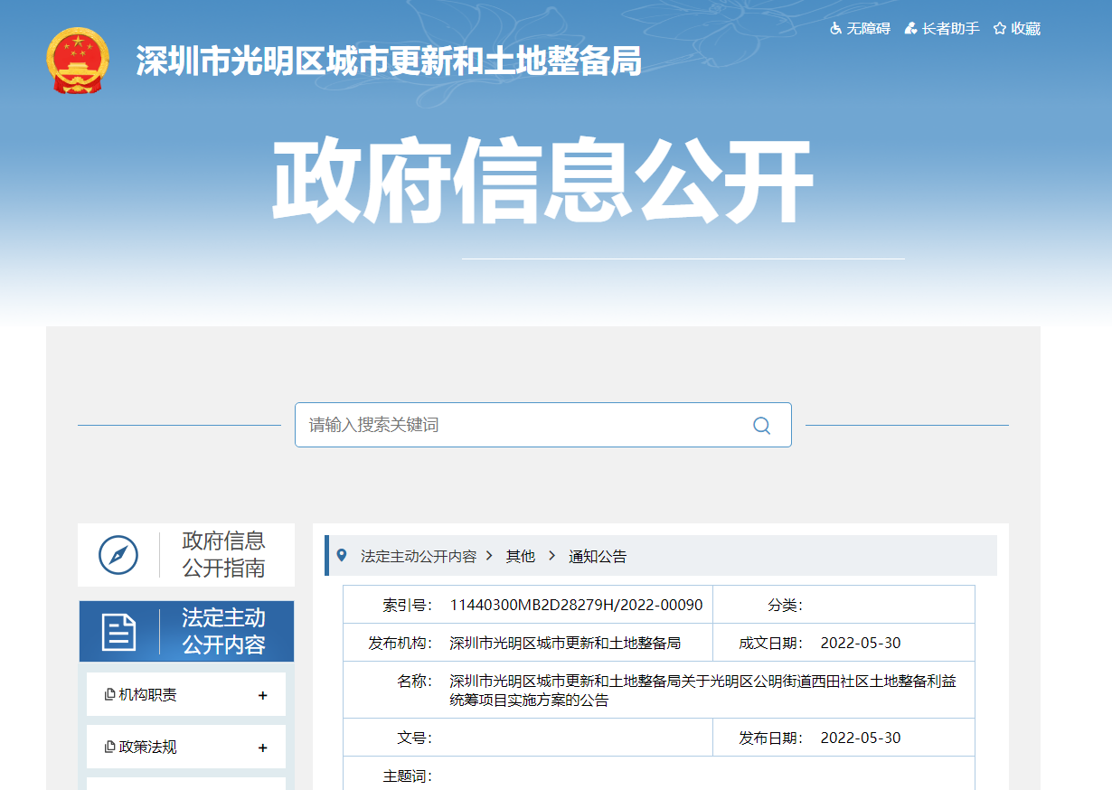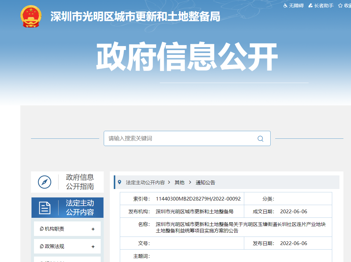 光明长圳社区连片产业地块和薯田埔社区土地整备利益统筹项目实施方案公布