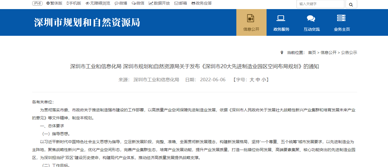 6月6日,深圳市工业和信息化局、深圳市规划和自然资源局发布关于发布《深圳市20大先进制造业园区空间布局规划》的通知。政策原文如下:各有关单位:为贯彻落实市委、市政府...