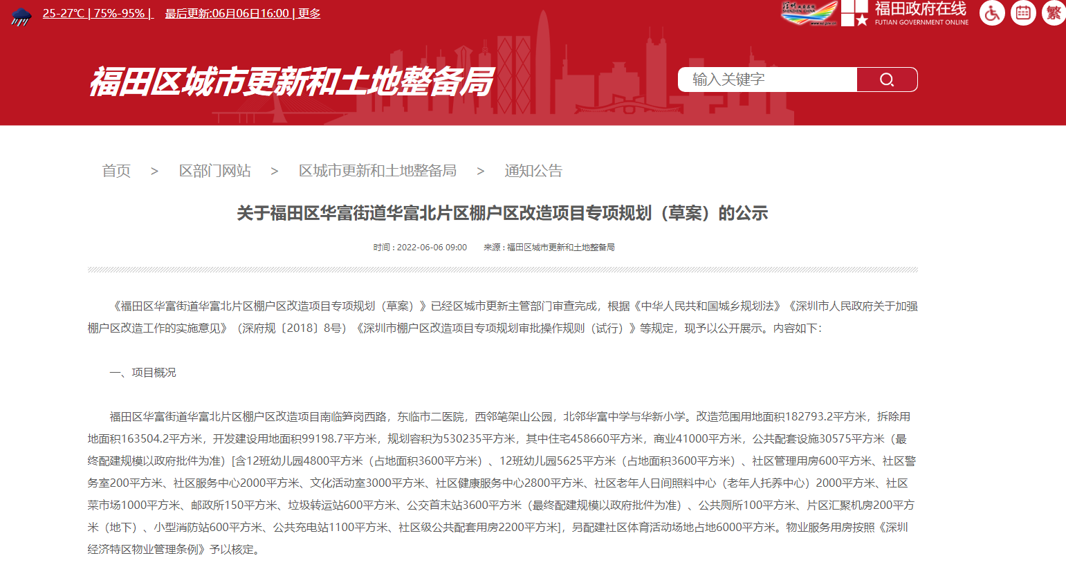 福田华富北片区棚户区改造项目专项规划(草案)公示