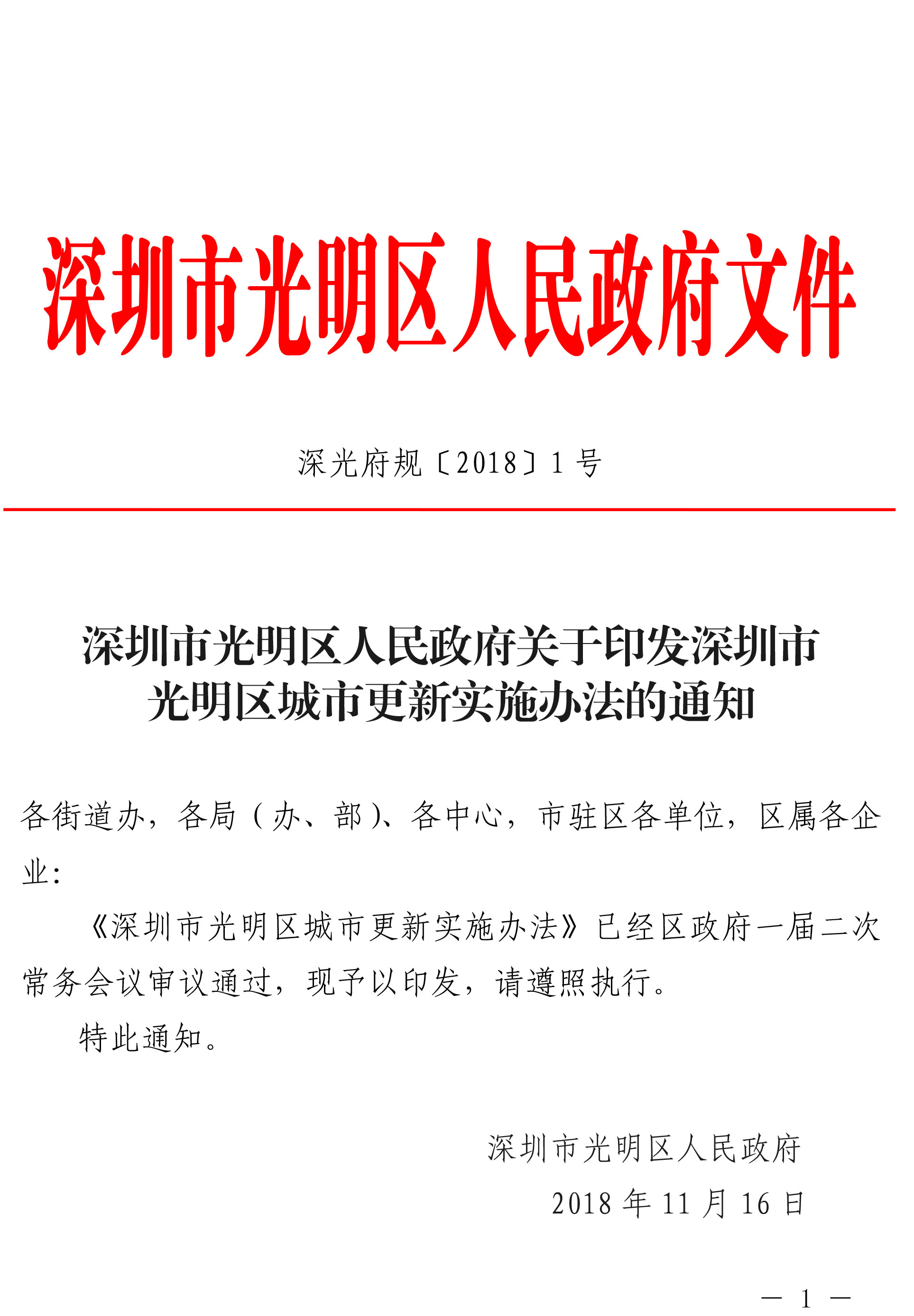 《深圳市光明区人民政府关于印发深圳市光明区城市更新实施办法的通知》