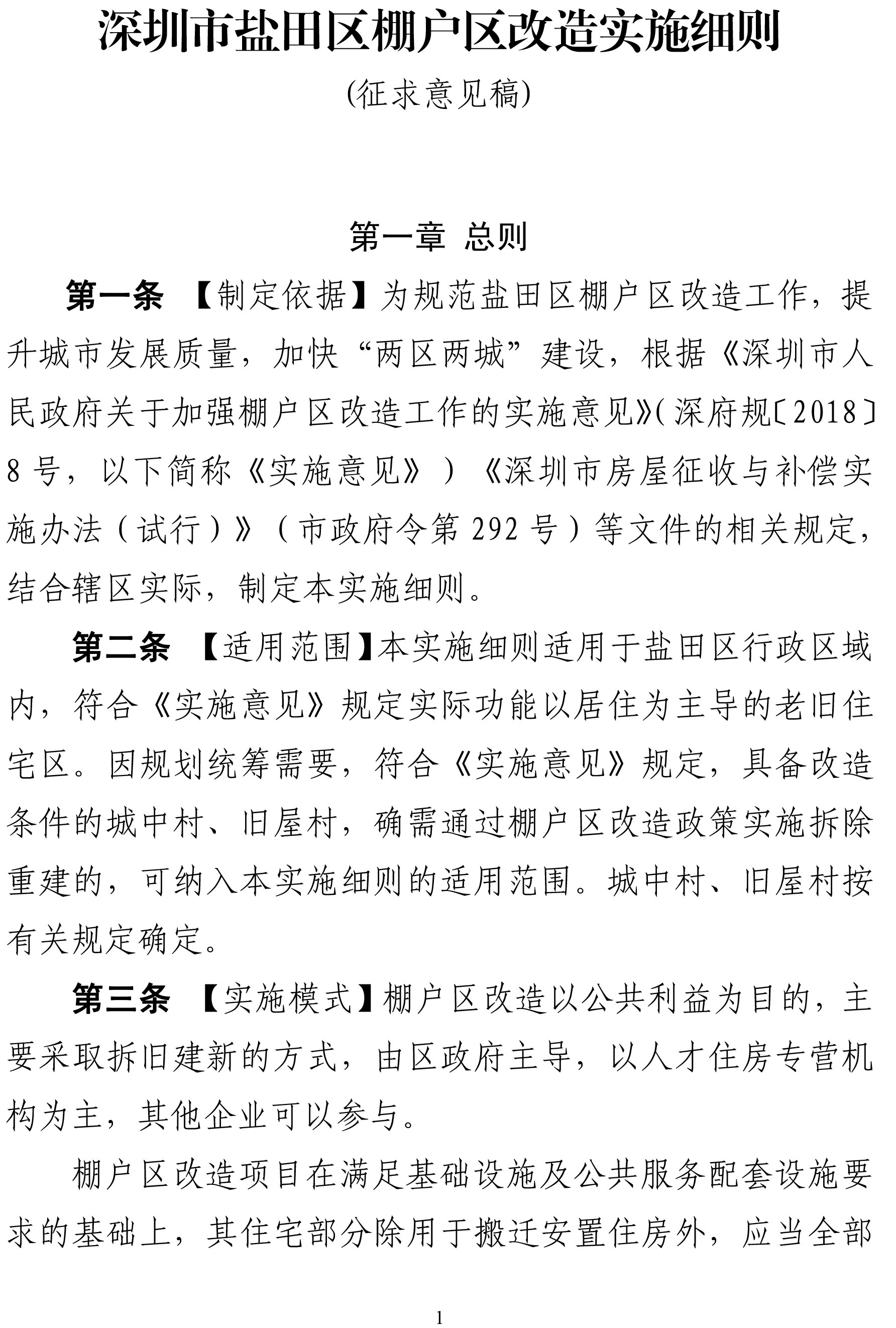 《深圳市盐田区棚户区改造实施细则(征求意见稿)》后附起草说明