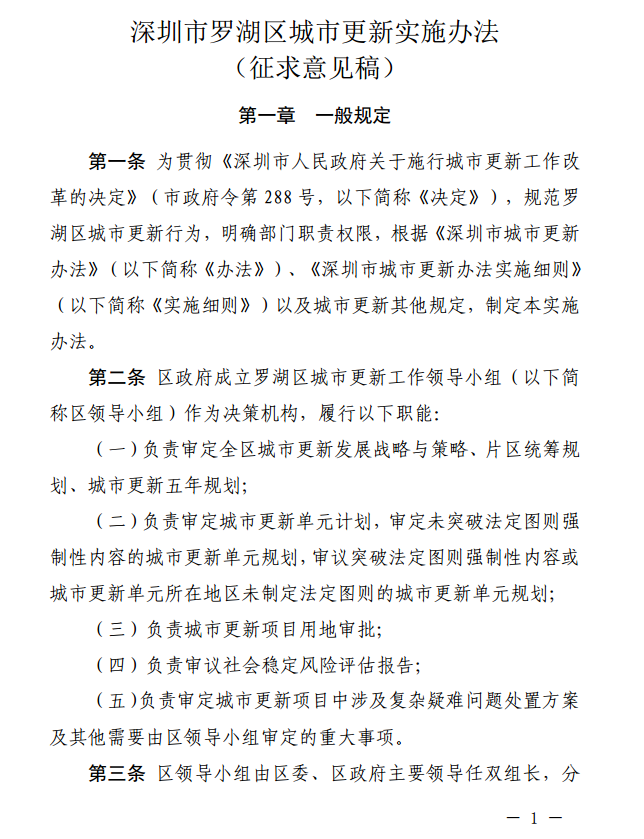 最新政策 I 深圳市罗湖区城市更新实施办法 (征求意见稿)
