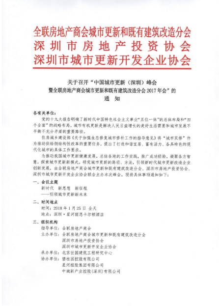 全联房地产商会城市更新和既有建筑改造分会将在深圳举办城市更新峰会