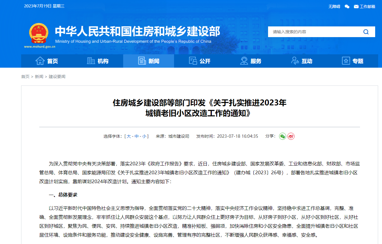 住建部:关于扎实推进2023年城镇老旧小区改造工作的通知