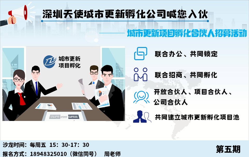 城市更新网2018年设立了深圳市天使城市更新孵化有限公司,开始了城市更新项目孵化模...