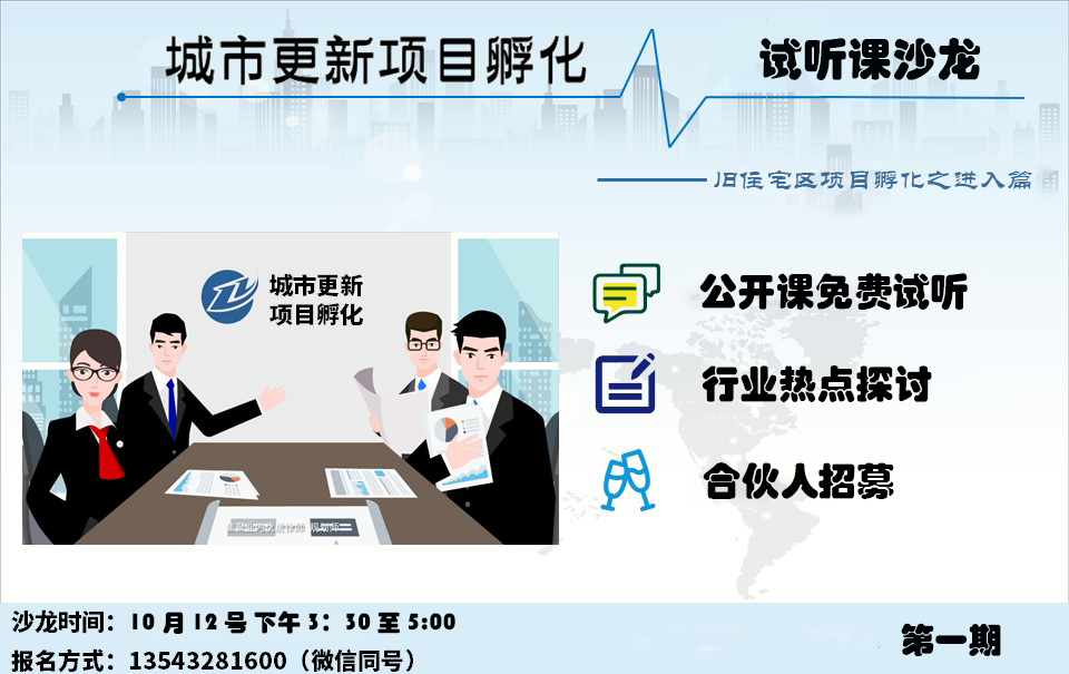 城市更新项目孵化沙龙——旧住宅区项目孵化免费试听课沙龙