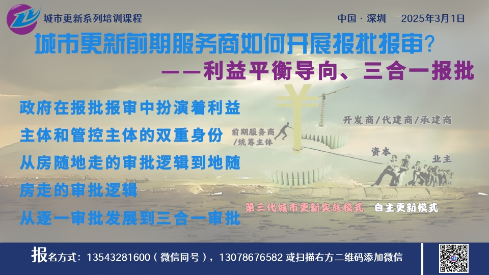 10年前,城市更新网即开始研究城市更新前期服务商制度,并运用研究成果,立足于以真正的城市更新前期服务身份去推动了两个城市更新项目。2025年开始,基于城市更新网长期的研究成果和长期的项目实践,城市更新网分别于2025年1月份和2025年3月份推出了《城市更新前期服务商如何算账》和《城市更新前期服务商如何开展拆赔谈签》两门公开课。本次课程《城市更新前期服务商如何开展报批报审》是城市更新网帮助业界打造城市更新前期服务商核心能力而推出的第三门课程。