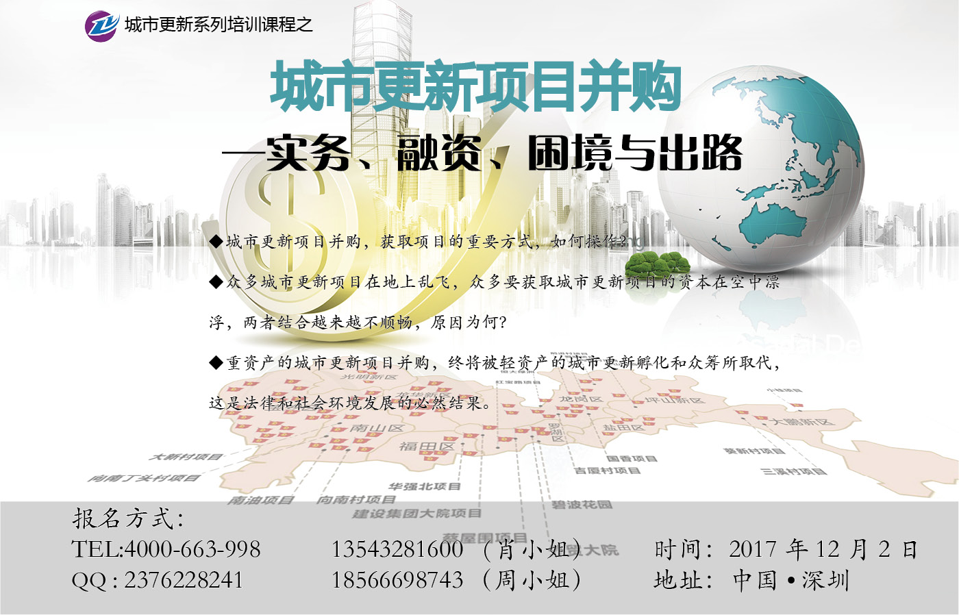 1、城市更新集团、房地产开发商、投资公司高管,拓展部门管理人员